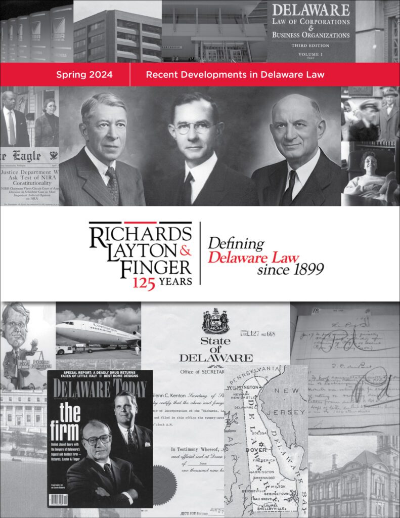 Richards, Layton & Finger has been defining Delaware law since 1899. Continuing our long tradition of providing insight into the evolution of our state’s influential laws, this publication highlights recent Delaware corporate and alternative entity cases as well as statutory developments in our state.