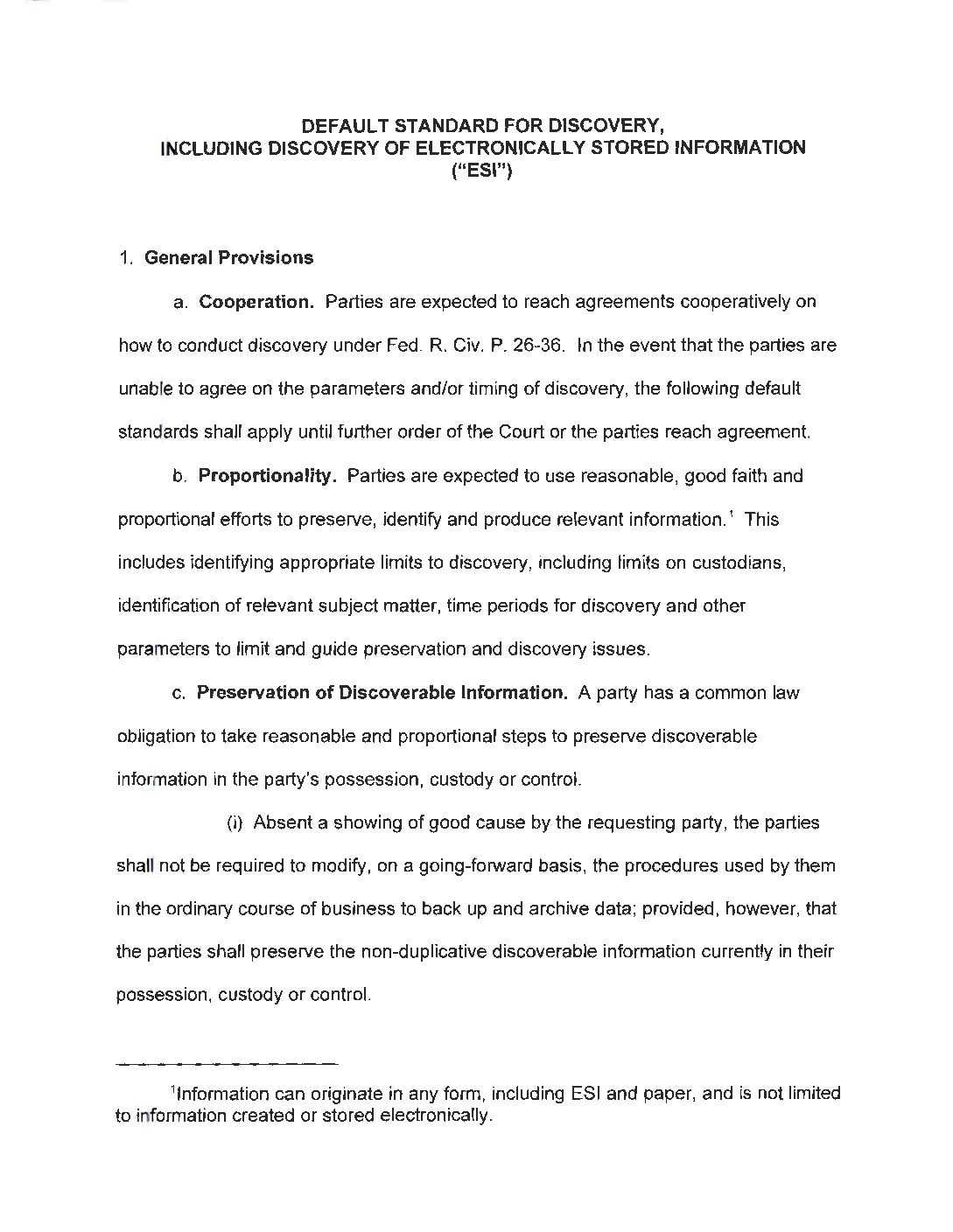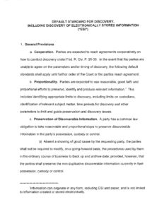 Default Standard for Discovery, Including Discovery of Electronically Stored Information